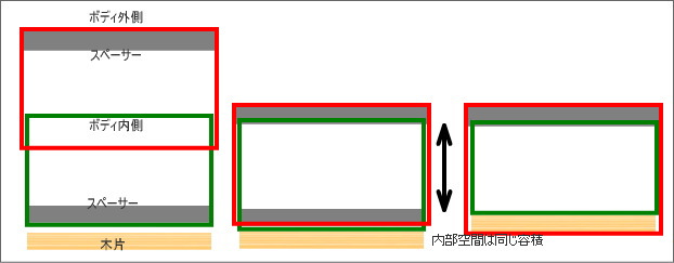 ナットを取り付ける為、本体内箱側のスペーサーを廃し、木材を直接取り付けています。