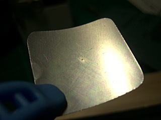 蛍光灯の光を当ててみて、穴のすぐ周囲までやすり傷が見えたら完了。