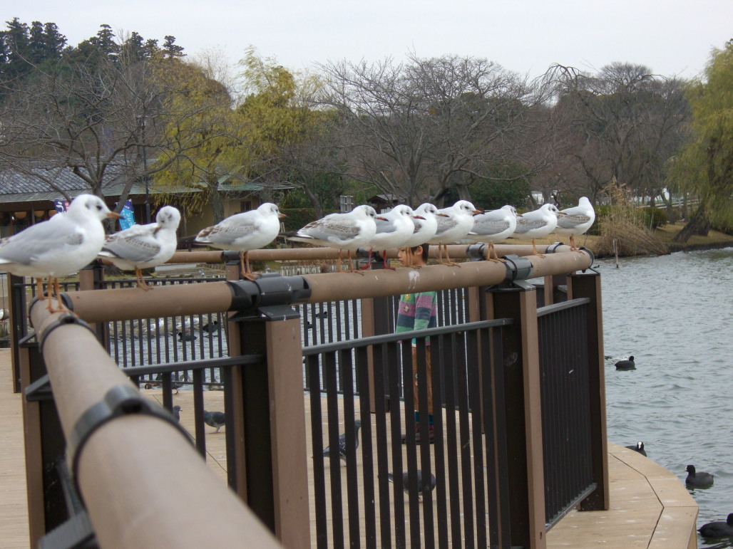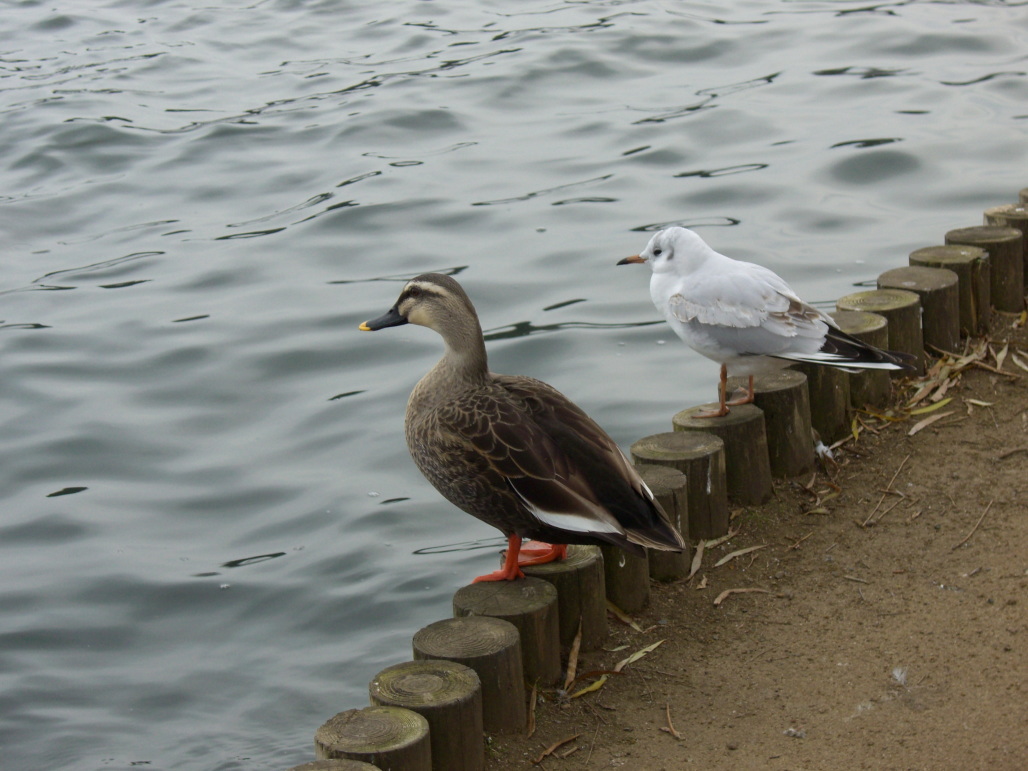 スワンボート乗り場付近は人も多い為、水鳥たちも餌がもらえるものと、大量に群がっていました。